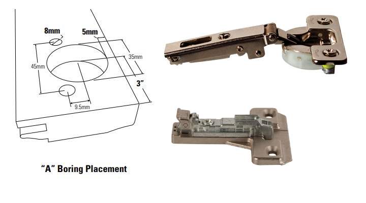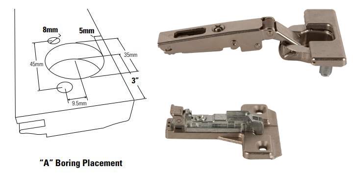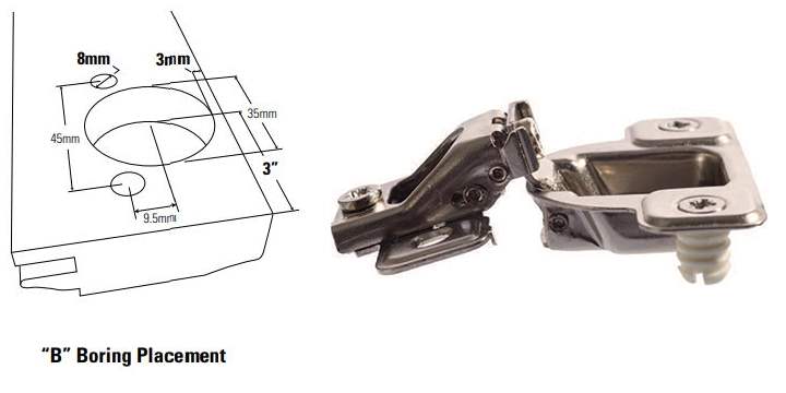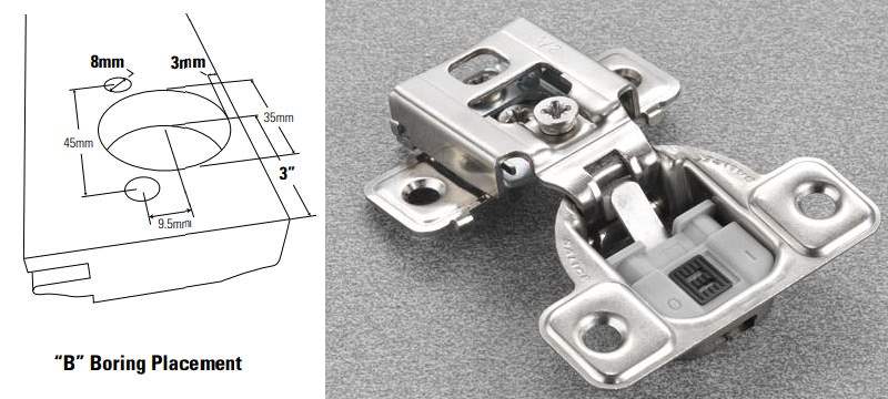 - Since the mounting bracket is almost 3" in length, it will consume space in your cabinet. This is emphasized if your cabinet frame is not flush with your box. This is the biggest draw back with standard length hinges.