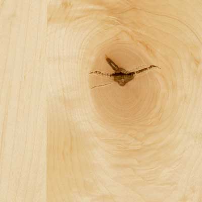 Maple Rustic Knotty displays a lighter color tone, with an allowance for larger-sized open knots, knots with cracks, clusters of pin knots, color and grain variation, mineral streaking and worm tracks.