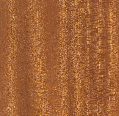Sapele Flat Sawn Mahogany has more flat grain with some cathedrals and less of the ribbon straight grain character found in Sapele Ribbon Grain Mahogany. Its color can vary from golden brown to dark reddish brown. Color tends to darken with age.