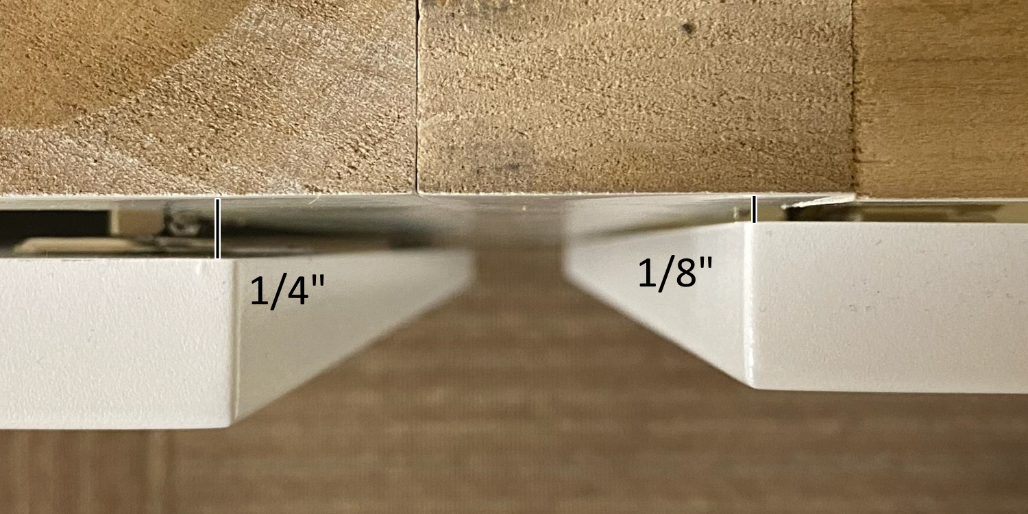 Below is a top view of the gap created between the Compact hinge (left) and Standard hinge (right)