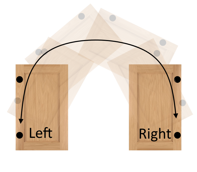 This will add the necessary boring to one door, and leave its mate unbored. You'll receive 4 hinge sets; 2 that will mount the door to the cabinet, and 2 that will mount that door to its mate.