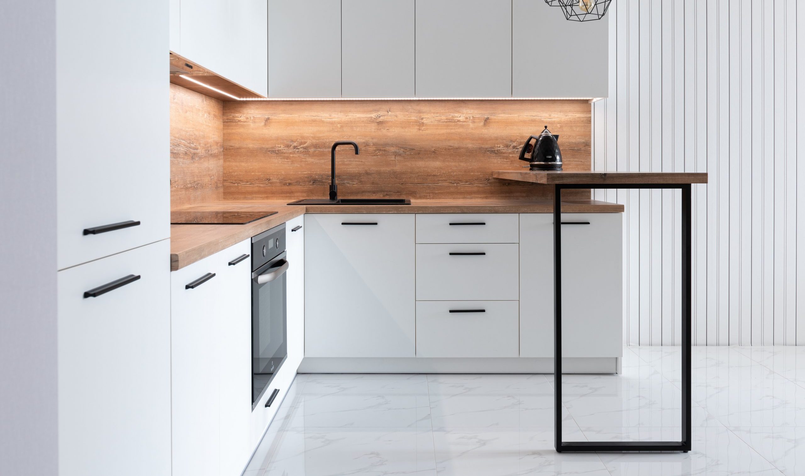 There are many different design styles that can be used for an overall modern kitchen; some popular choices include mid-century modern, farmhouse style, and traditional—to name just a few! It’s important when designing your dream kitchen (or redesigning your current one!) that features like cabinet doors and installed light fixtures aren’t overlooked. There are many small touches that can be incorporated into any design to keep it modern and fresh but still styled.