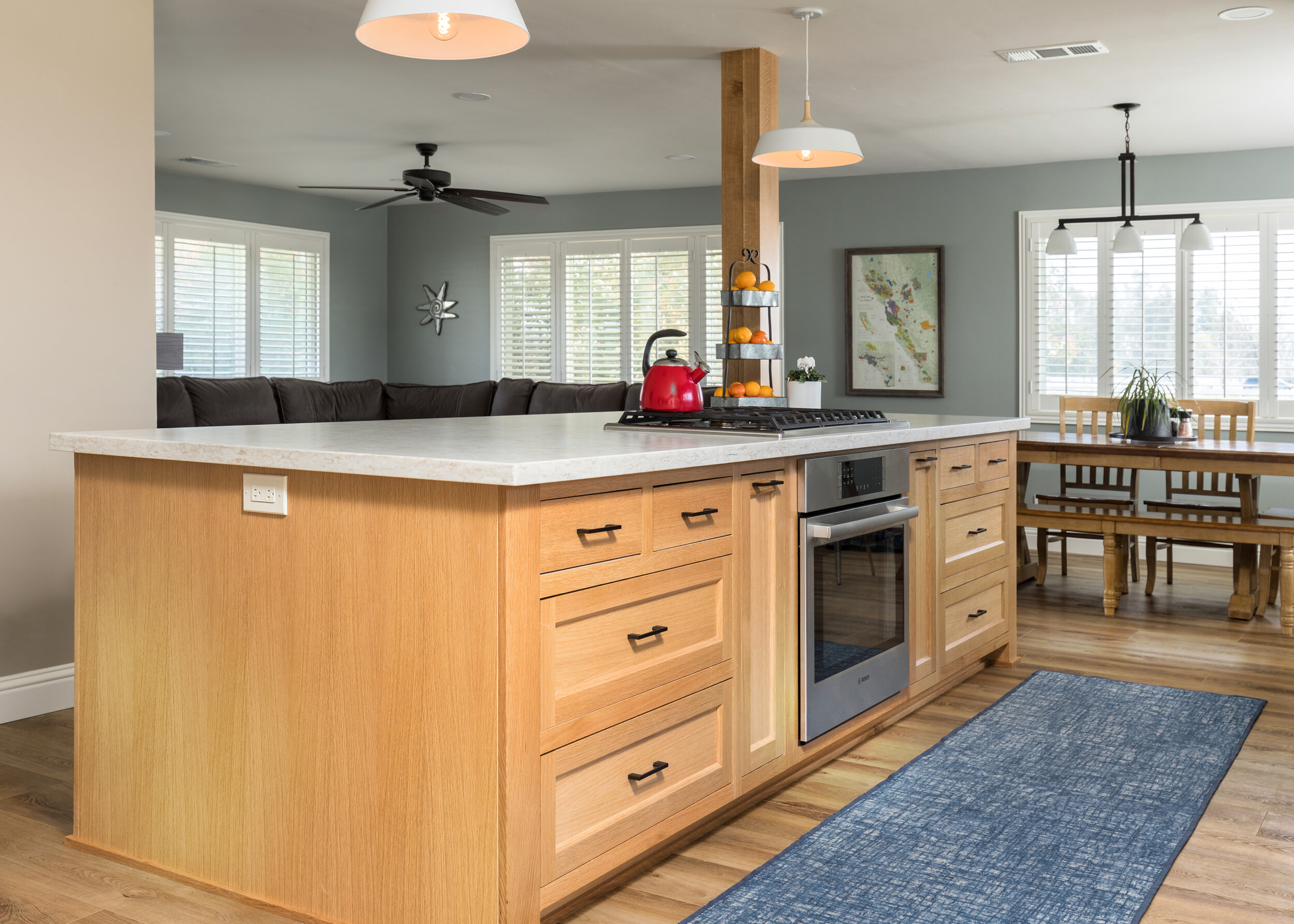 As kitchens have evolved from strictly utilitarian spaces to hubs of entertainment, meal-sharing, and food preparation, shaker cabinet doors have remained popular for their ability to adapt to this evolving space. Their design complements a coastal kitchen’s light and airy feel, especially when painted in white or muted tones. To further enhance the coastal aesthetic, pair these doors with glass pendant lights, beadboard panels, and natural accents like rattan or wicker.