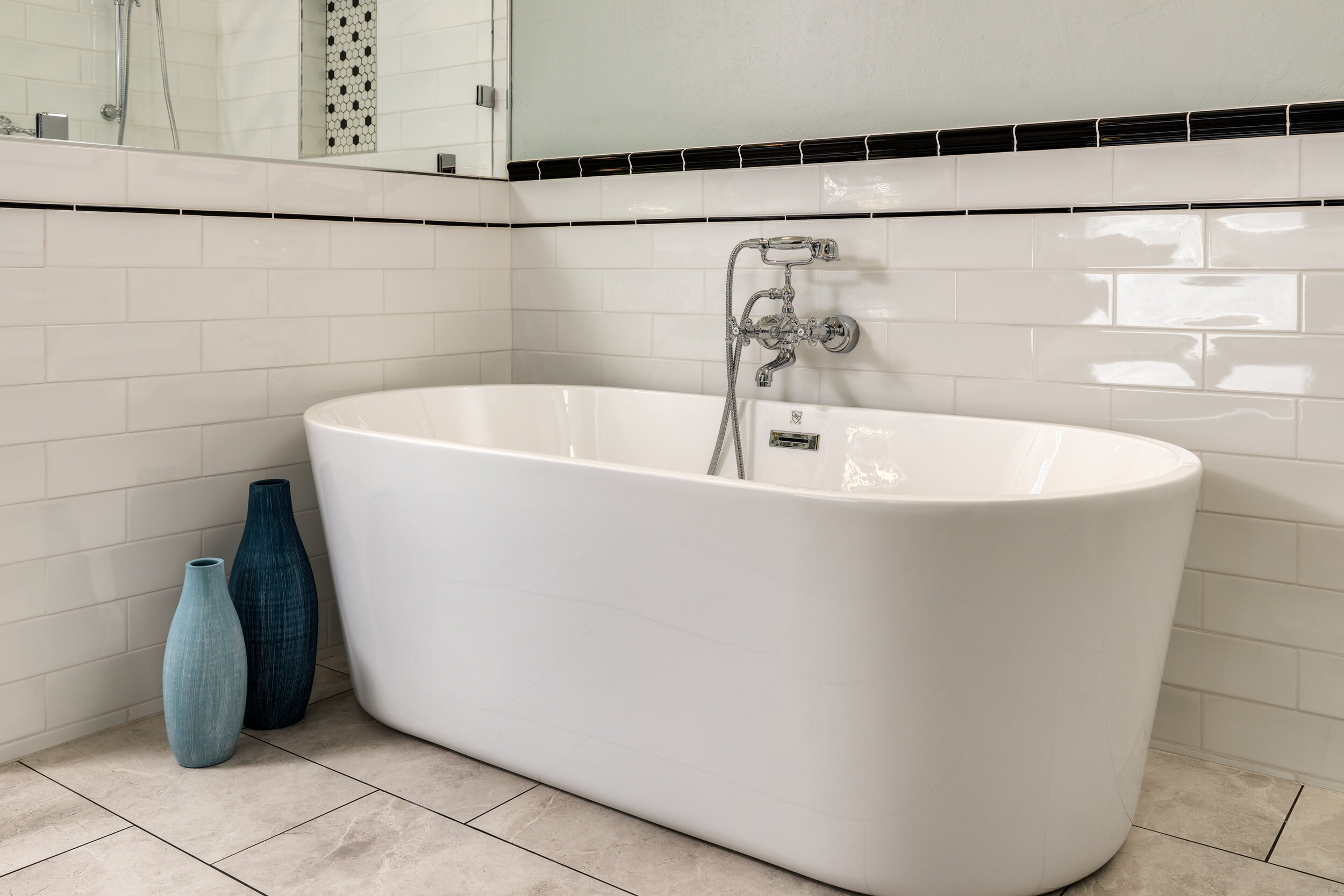 Next, choose a neutral color palette. Farmhouse bathrooms typically feature a light and airy color scheme. Stick to colors like white, cream, and light blue for a classic look. Or, crank up the warmth with light browns, tans, or greens. And the more light you can let in, the better—if you have large windows in your bathroom, that’s a great start, but consider an interior transom window over your bathroom door to allow even more light in while still maintaining the room’s privacy.