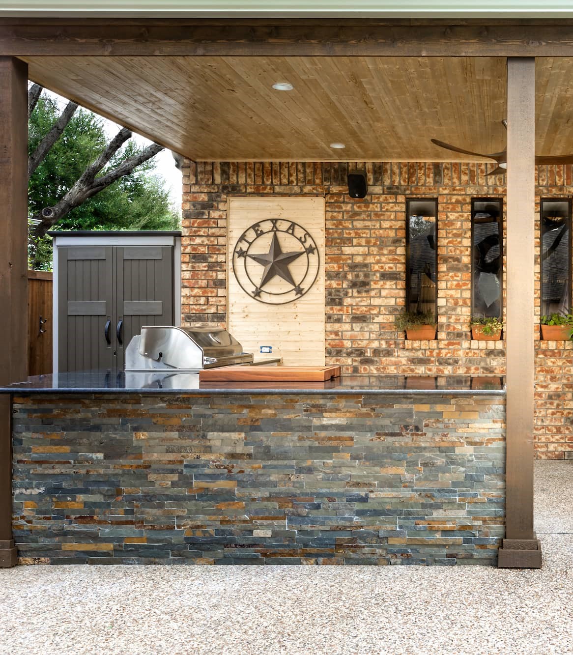 Lastly, you’ll want to consider materials. Simply put, some materials don’t weather as well as others. Outdoor porcelain and ceramic tile are timeless, sturdy choices that can create a wide range of looks from rustic and classic to more modern and chic. Granite countertops are incredibly durable, as are marble countertops, and both can stand up to the weather admirably. Concrete or brick options are also popular for outdoor kitchens, but they do tend to limit the range of aesthetic options you have available. Your countertops will be the most visible element to most of your guests in your outdoor kitchen, so most of the character your space gives off will come from your decisions here.